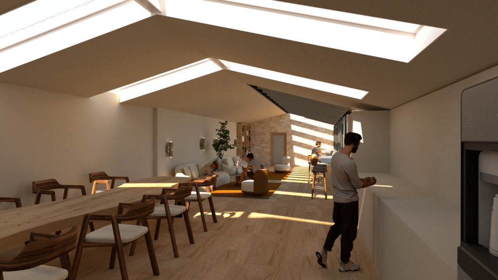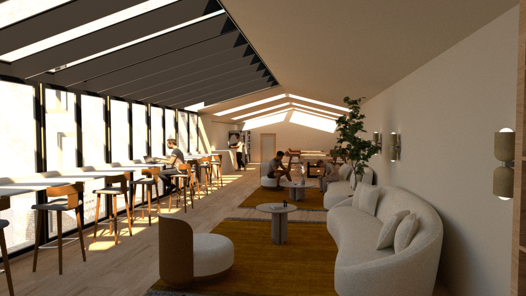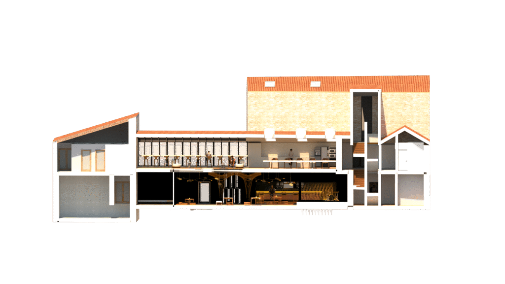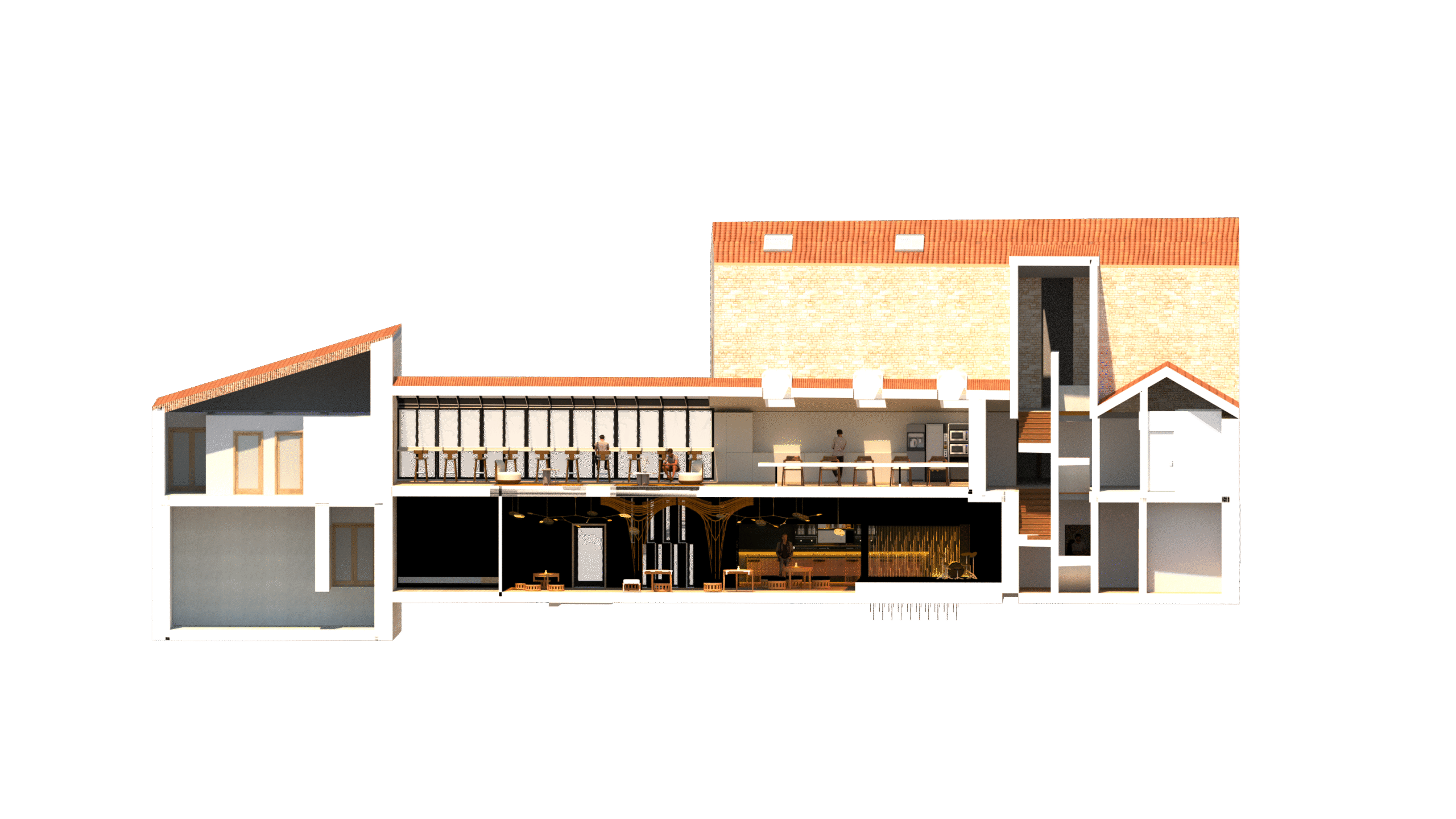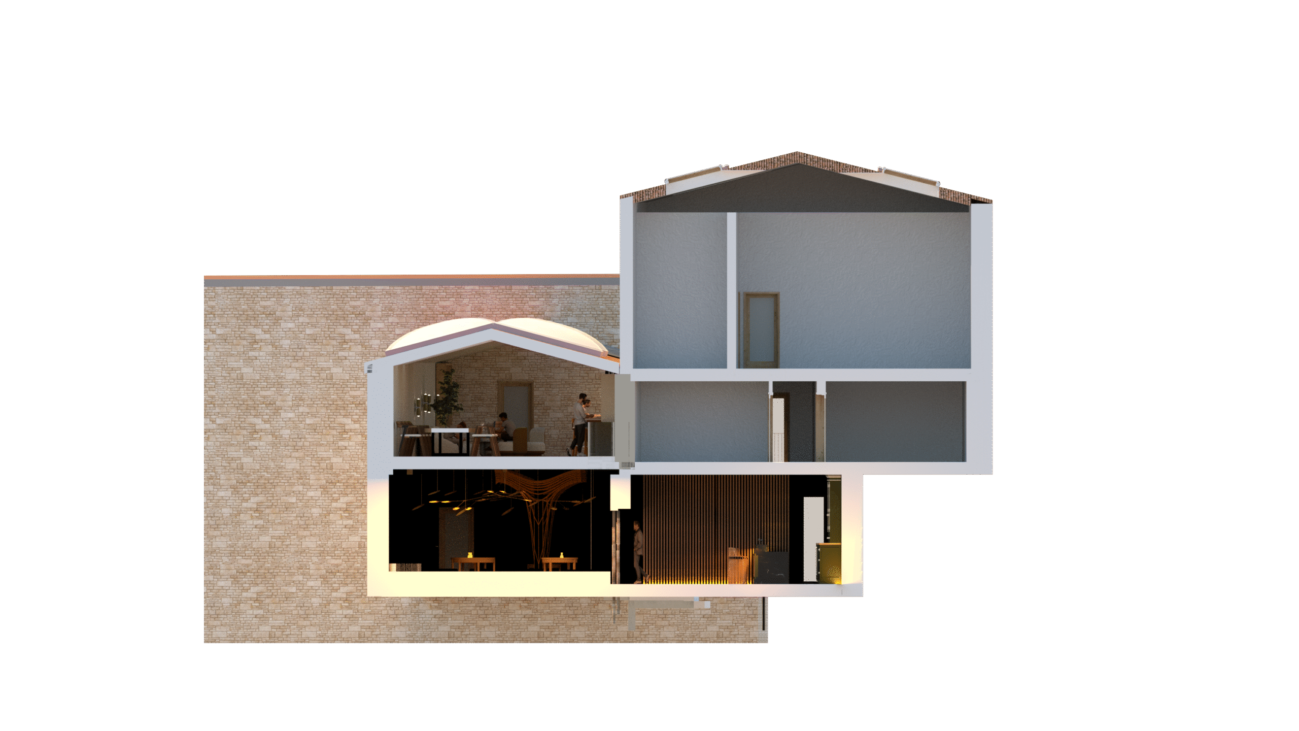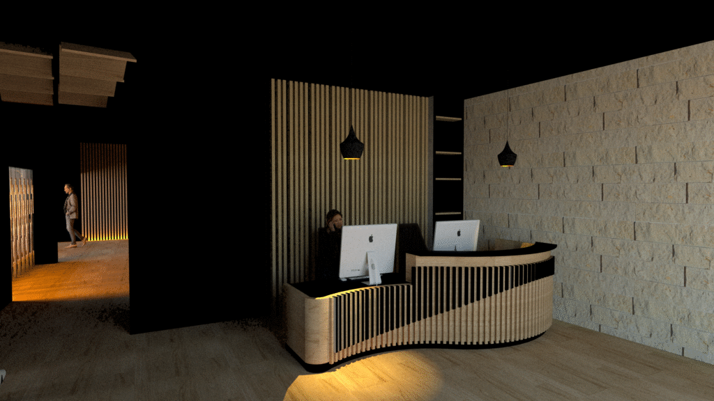 Ce projet est une rénovation d’une école de musique en un environnement apaisant et inspirant, tout en répondant aux besoins spécifiques qu’à une école de musique. Pour cela, le projet s’inspire de la forêt comme métaphore d’un environnement naturel et ressourçant. Le but était d’apporter ce qu’on pourrait ressentir dans une forêt en créant une atmosphère par la lumière, les matériaux et l’architecture.